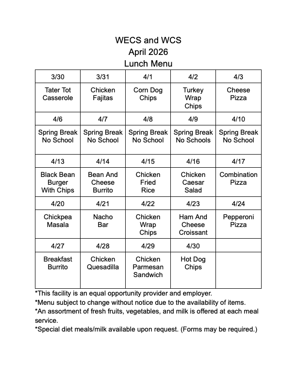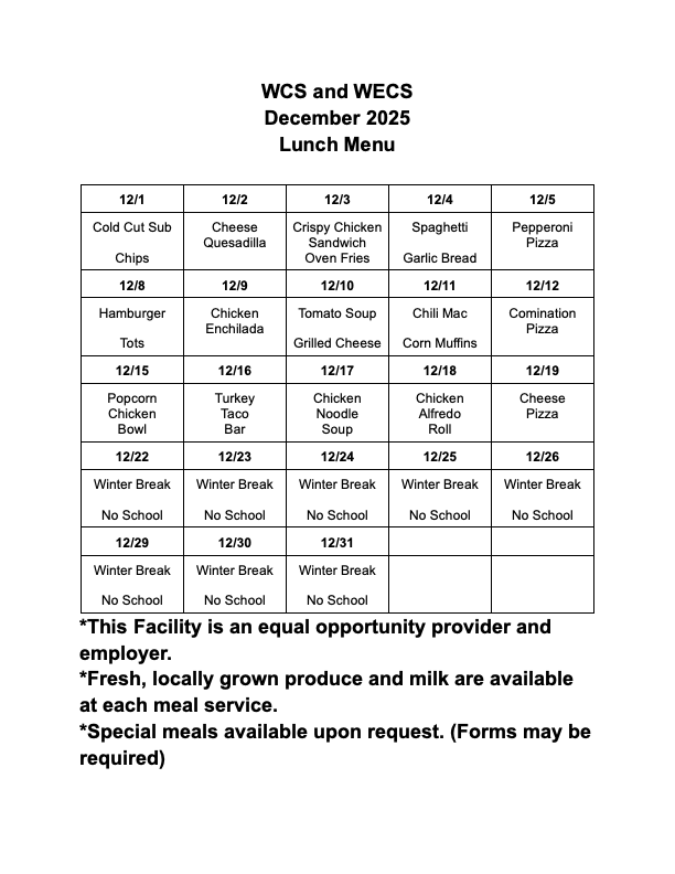 WCS is happy to accommodate the medical needs of all of our students. If your child has specific dietary needs please fill out the following form and turn it in to our office: